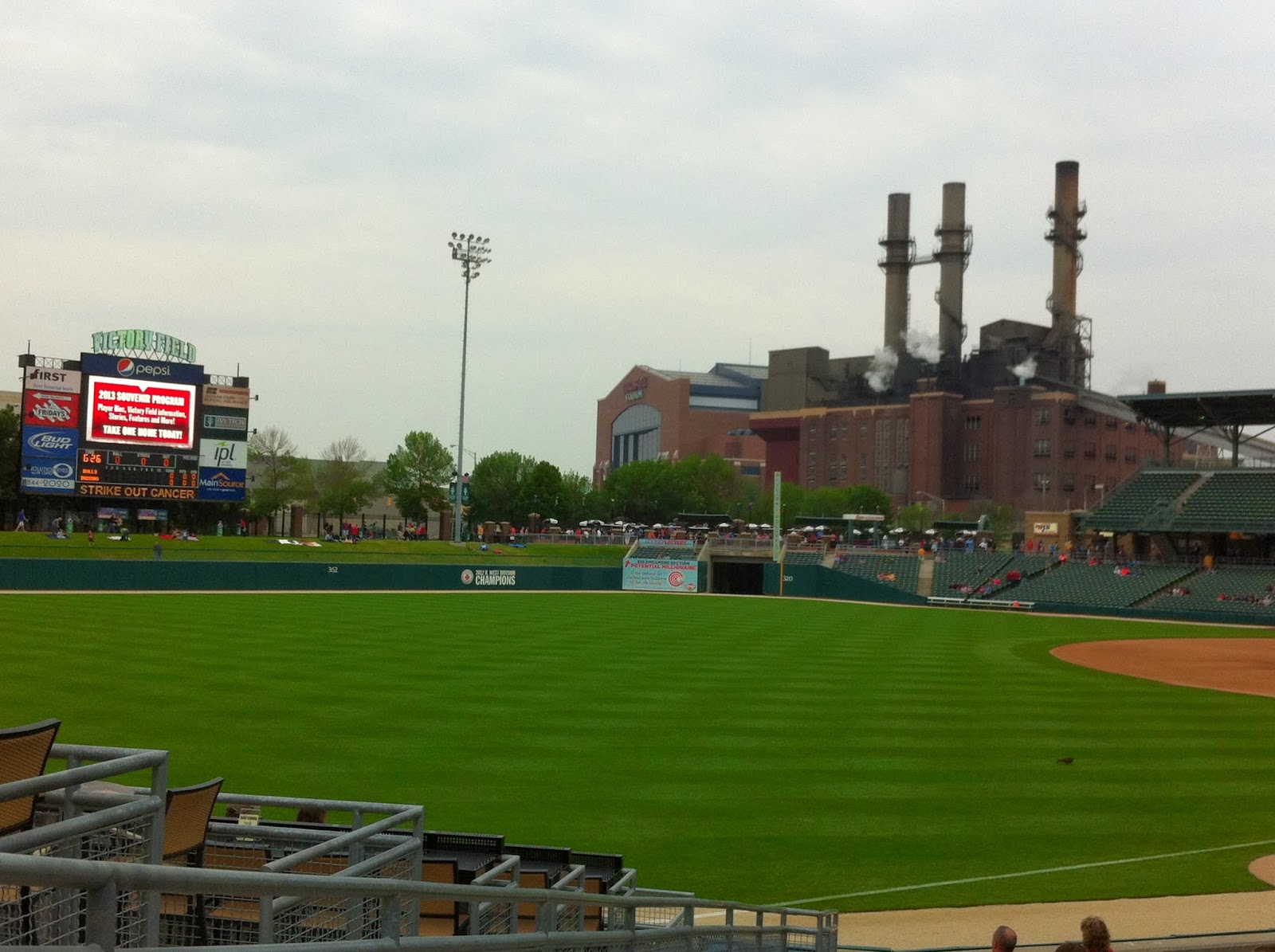 St. Louis – The latest iteration of Busch leaves a perfect view of The Arch beyond the outfield. For some reason, I had difficulty navigating the place. (Honest, I only had one beer at Mike Shannon’s.) Maybe it still required some finishing touches, but I ran into a couple of dead ends at the bottom of stairwells. The shops/restaurants beyond left field weren’t built yet in 2013. I like that they marked the base line of the former Busch along the third base side outside the current park.